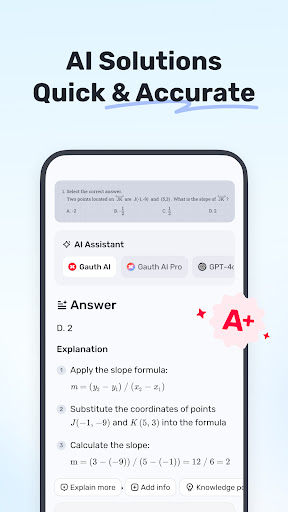 Được tích hợp các công cụ thiết yếu như Đọc, Viết, Chế độ Tập trung và Máy tính. Cho dù bạn đang gặp khó khăn với những cuốn sách khó, bài tập viết, sự mất tập trung hay tính toán, hãy tận hưởng tính năng đơn giản hóa văn bản, kiểm tra ngữ pháp và tính toán toán học trong một ứng dụng. Gauth giúp bạn nâng cao hiệu suất học tập.